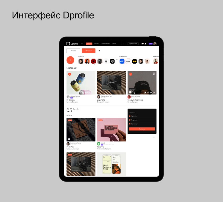 Dprofile — это площадка, куда можно быстро выгрузить портфолио, получить награду, вырасти в рейтинге по прозрачной балльной системе, поучаствовать в активностях, марафонах, прокачать насмотренность, сохранить референсы в избранное и т. д. Теперь дизайнеры могут использовать одну площадку для решения всех своих задач, не распыляясь на несколько разных сервисов.